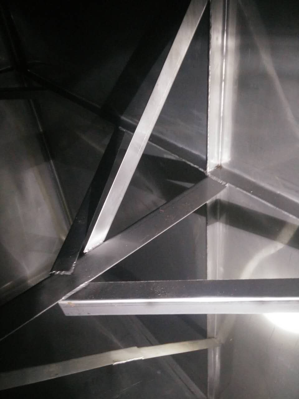 主拉主要作用是防止水箱變形,厚度一般采用靠近底板的側(cè)板厚度為基準(zhǔn),規(guī)格為4cm*4cm。其焊接間距一般為1000mm一條,大型水箱特別是高度超過3米以上的。其間距應(yīng)該為500mm一條,連接處必須進行滿焊處理。