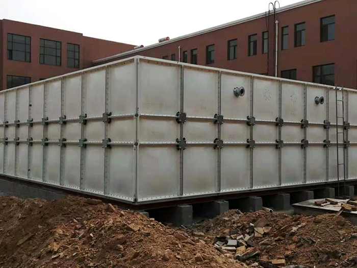四、用固定角鐵銜接底板和槽鋼,使玻璃鋼水箱箱體愈加牢固的固定在槽鋼基礎(chǔ)上。