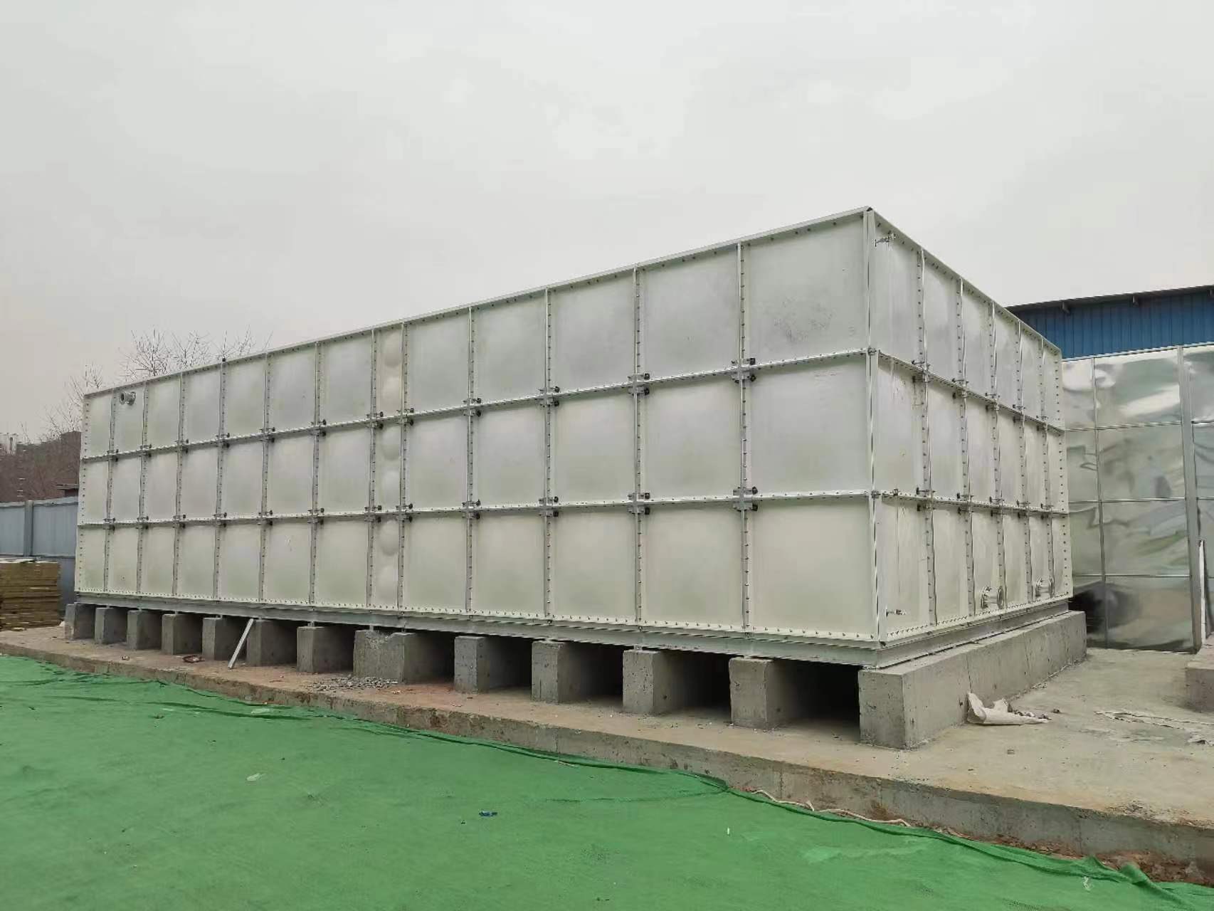 2、玻璃鋼水箱板使用玻璃纖維增強(qiáng)材料,采用高溫、高壓工藝模壓而成。板塊尺寸分別為1000×1000、1000×500和500×500三種標(biāo)準(zhǔn)板塊,板厚度為6mm、8mm、10mm、12mm、14mm、16mm。