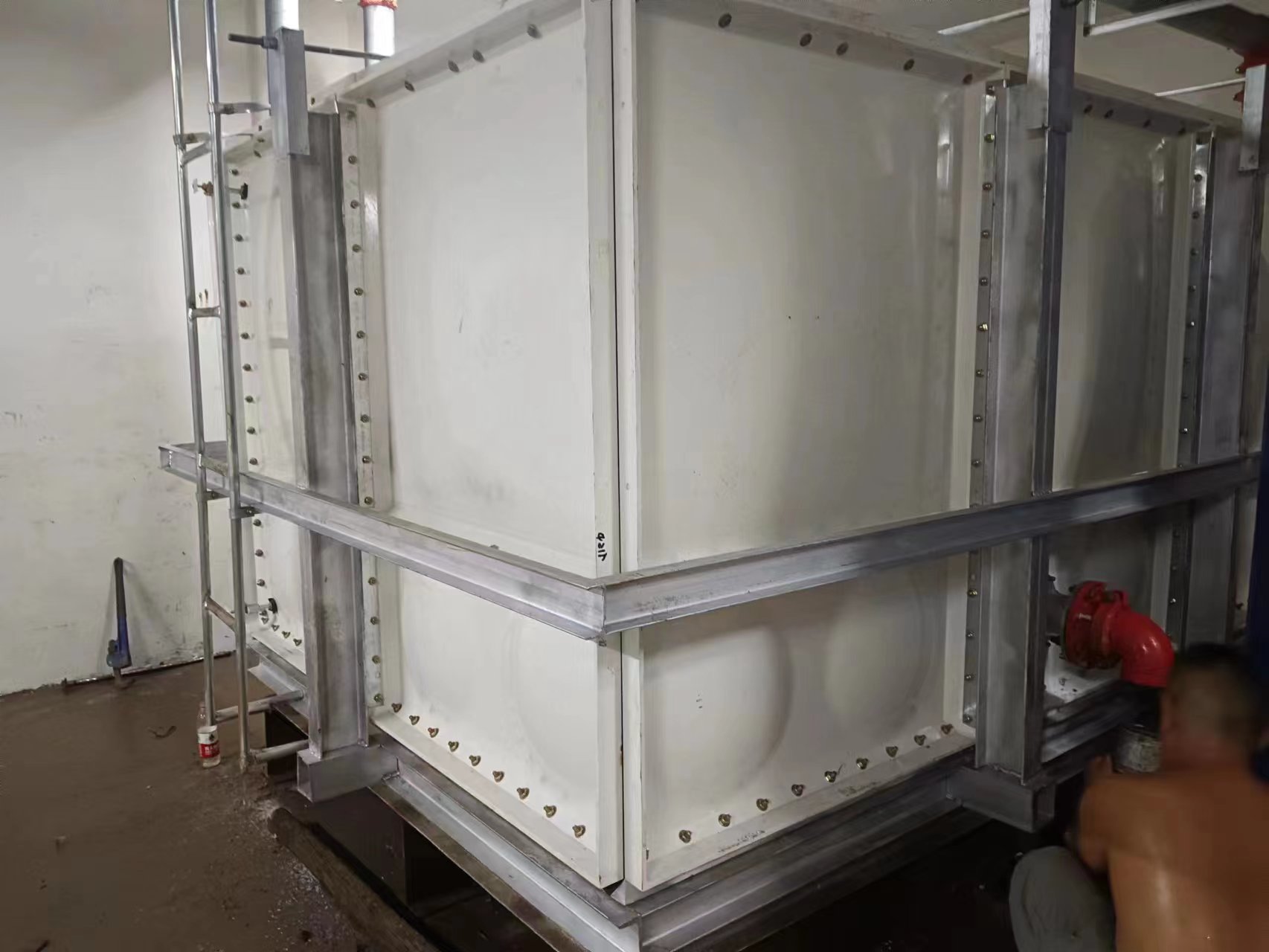 由于使用環(huán)境及使用介質(zhì)所限,有些水箱內(nèi)部盛有高濃度溶液,如:濃鹽水、海水等,對水箱內(nèi)壁鋼板會有嚴(yán)重腐蝕,因此無法采用不銹鋼水箱或者鋼板水箱。正常玻璃鋼水箱板可以耐腐蝕,但是水箱內(nèi)部又設(shè)有鋼制拉筋支撐等,故此也不適用以上介質(zhì)使用。為了滿足特殊用戶的使用需求,經(jīng)過承重及承壓測試后,這種無內(nèi)件玻璃鋼水箱面世,它采用不同規(guī)格(1000*1000mm、1000*500mm、500*500mm)的玻璃鋼模壓板組裝,水箱內(nèi)部沒有設(shè)任何鋼制配件,水箱外部及底部采用工字鋼加固,所有法蘭采用ABS材質(zhì)俗稱塑料材質(zhì),外觀整潔無變形,內(nèi)部無配件,易清洗、維護(hù)方便,延長了水箱的使用壽命,滿足特殊用戶的特殊需求。