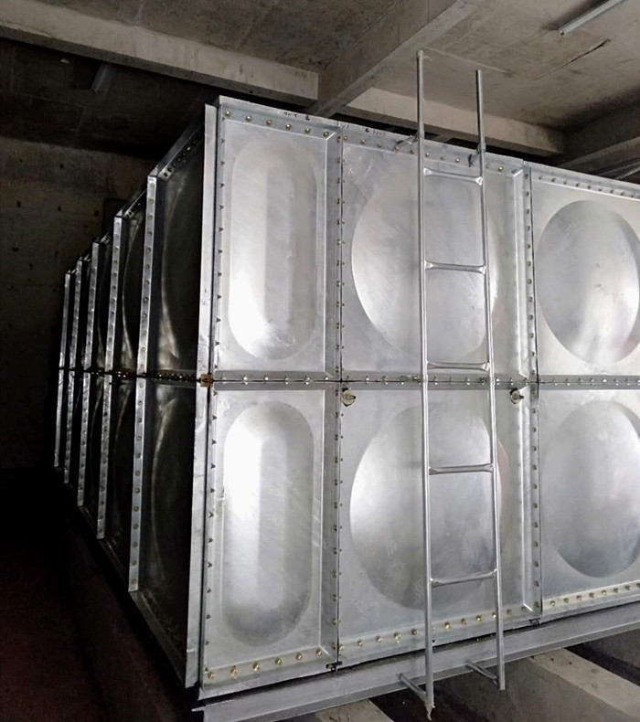 鍍鋅水箱主要采用優(yōu)質(zhì)的Q235鋼板沖壓而成,形成1000×1000、1000×500、500×500等標(biāo)準(zhǔn)板塊后經(jīng)熱浸鍍鋅處理后形成鍍鋅水箱板。優(yōu)點是:、全螺栓連接,現(xiàn)場進(jìn)行組裝,組裝快捷方便,組裝時采用密封條密封,不易出現(xiàn)漏水及密封不嚴(yán)現(xiàn)象。第二、水箱體內(nèi)特殊性拉桿結(jié)構(gòu),使力學(xué)性能更合理,高度可達(dá)到5米。鍍鋅水箱對安裝現(xiàn)場無特殊要求,無需吊裝設(shè)備,容積可滿足用戶要求。