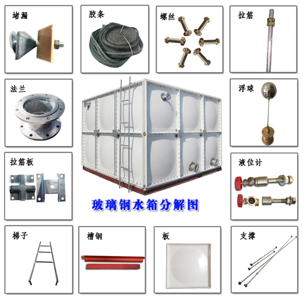 5、 玻璃鋼消防水箱標(biāo)準(zhǔn)配件包括:進(jìn)水管法蘭,出水管法蘭,溢流管法蘭,污水管法蘭,通風(fēng)孔,人孔,內(nèi)外梯等。所有開(kāi)口位置均可在現(xiàn)場(chǎng)指定,但相關(guān)管道路徑和數(shù)量,用戶(hù)在訂購(gòu)時(shí)應(yīng)提前指定;